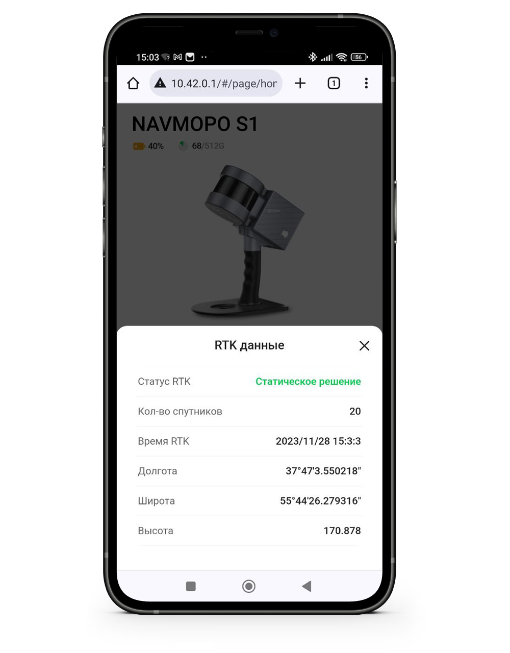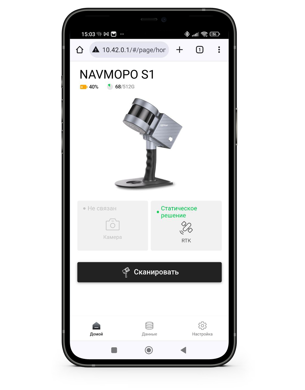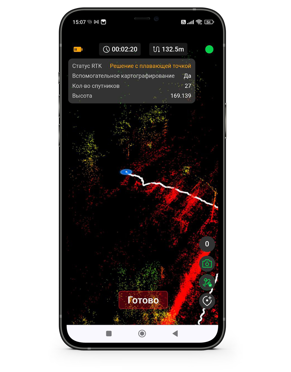 Равномерным шагом, со средней скоростью начинаем движение по маршруту, при этом иногда контролируем работу системы через ПО NAVMOPO Scan на смартфоне.