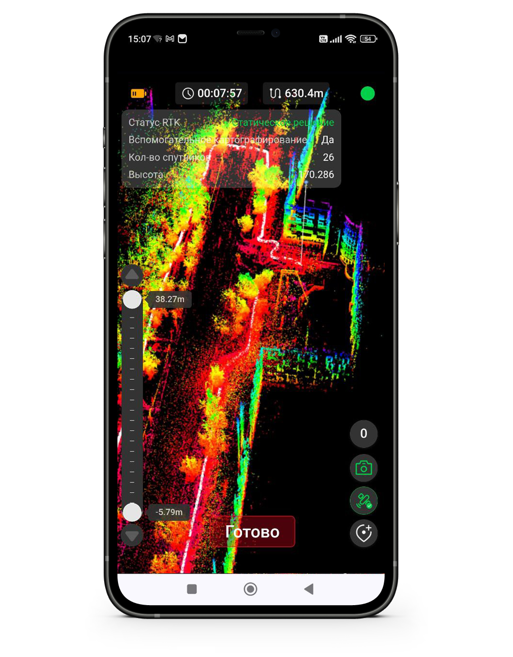 Был небольшой участок с потерей фиксированного решения (активно работают глушилки), благодаря SLAM технологии это не повлияло на качество облака.